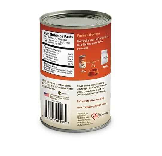 Citrouille, marc de pomme, épinards, marc de tomate, chlorure de choline, gingembre, carbonate de calcium, cannelle, pantothénate de calcium (vitamine B5) chlorhydrate de pyridoxine (vitamine B6), acide folique (vitamine B9), supplément de vitamine B12.